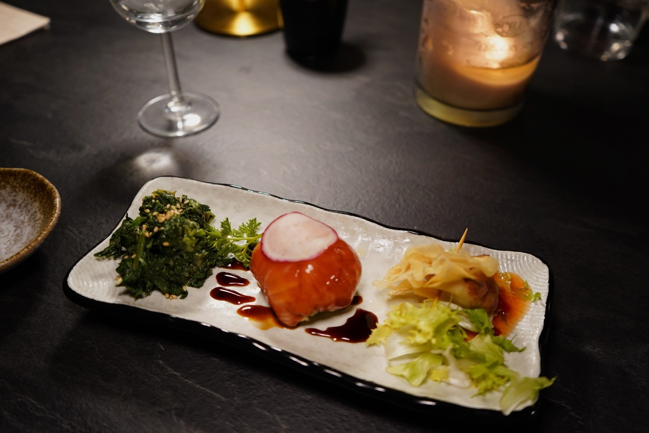 One of the most interesting moments is the Hiromi starter, as it shifts the narrative toward a more domestic side of Japanese cuisine. Goma-ae spinach dressed in a lightly sweet sesame sauce, became popular in Japan as a simple way to encourage children to eat vegetables.